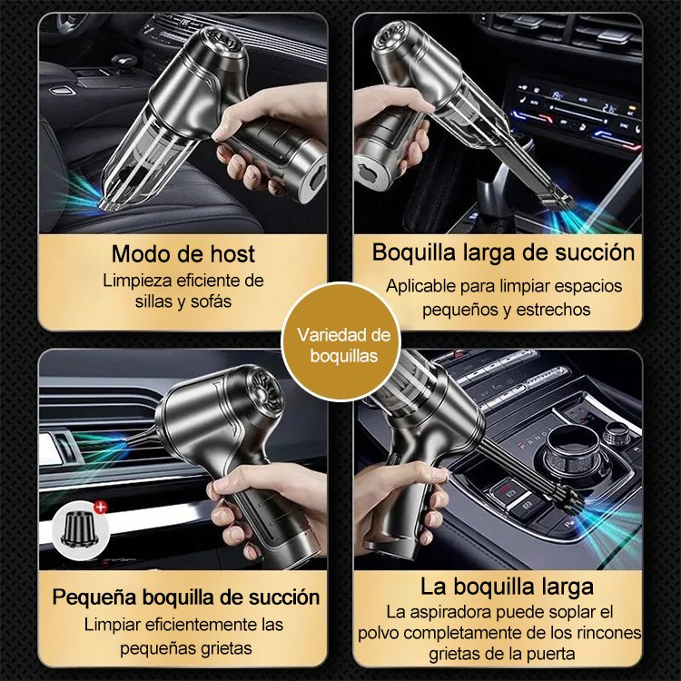 Puede limpiar fácilmente todos los rincones de su coche. Recoge rápidamente cualquier resto de suciedad, polvo o arena. Diseño inalámbrico, sin necesidad de enchufar, ¡¡¡deshágase de la molestia de una aspiradora grande con cable!!!